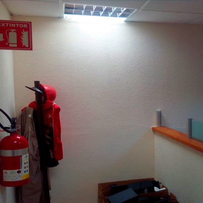 Ampliación de oficinas de Informática con estructura de aluminio, construcción de escalera con herrería, colocación de muro de Tablaroca e instalaciones de gabinete Autocontenido.